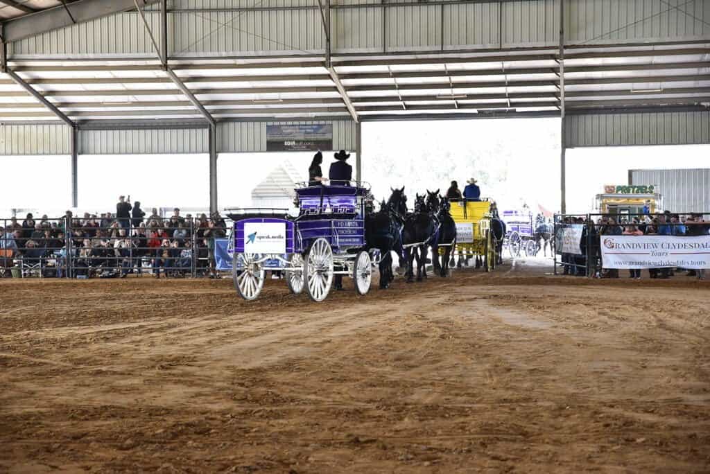 Experience the thrill of victory firsthand as a sponsor at the Grandview Invitational, where you'll have the unique privilege of riding on the wagon around the arena following the exhilarating 6 horse hitch competition—a truly unforgettable way to associate your brand with triumphant moments.